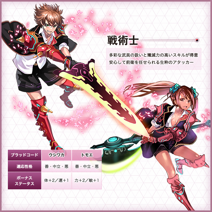 隊員のタイプ、ブラッドコードの特徴を把握し、パーティーの戦略にあわせてキミだけのエクス隊を創り出そう。